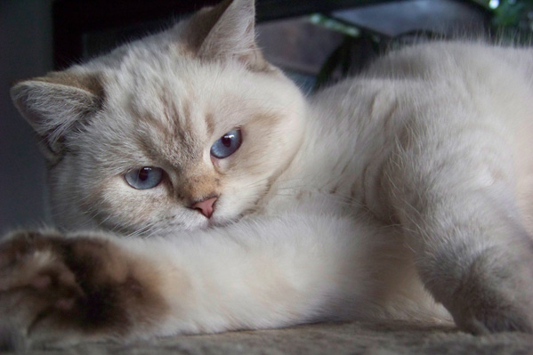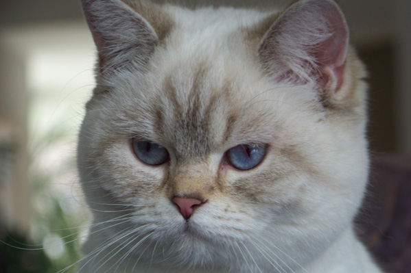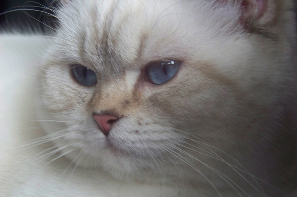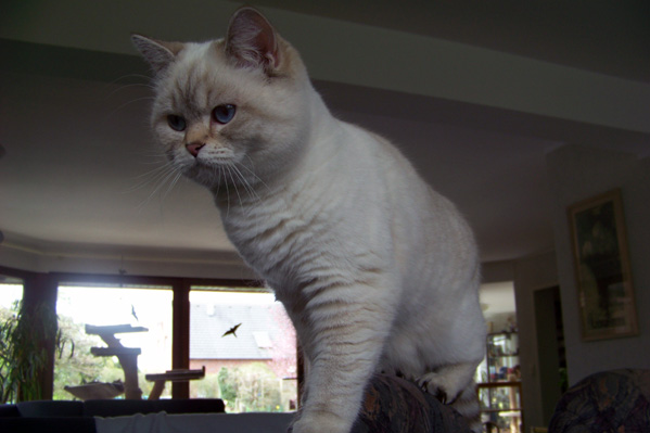 Wer kann schon diesen wunderschönen blauen Augen wiederstehen? Wir jedenfalls nicht!!Zouky ist eine sehr schüchterne Katze, fordert ihre Streicheleinheiten jedoch penetrant ein wenn sie möchte. Wenn Besuch kommt, ist sie meistens nicht zu sehen, aber ihre Babys sind ihr Ein und Alles. Zusammen mit unserem Indie gab es dieses Jahr ein Langhaar-Baby, zu diesem sie noch eine ganze Gruppe Tabby-Babys von unserer Züchterfreundin Eva Kleinkröger adoptierte. Die echte Mutter ist leider krank geworden, aber Zouky hat sich problemlos um alle gekümmert und war froh über ihre kleine Bande!.
